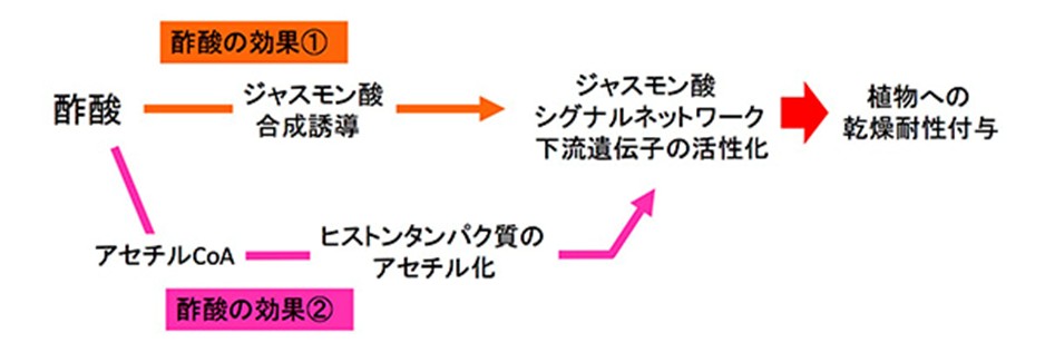 酢酸の効果は二重の経路で植物に乾燥耐性を付与する。